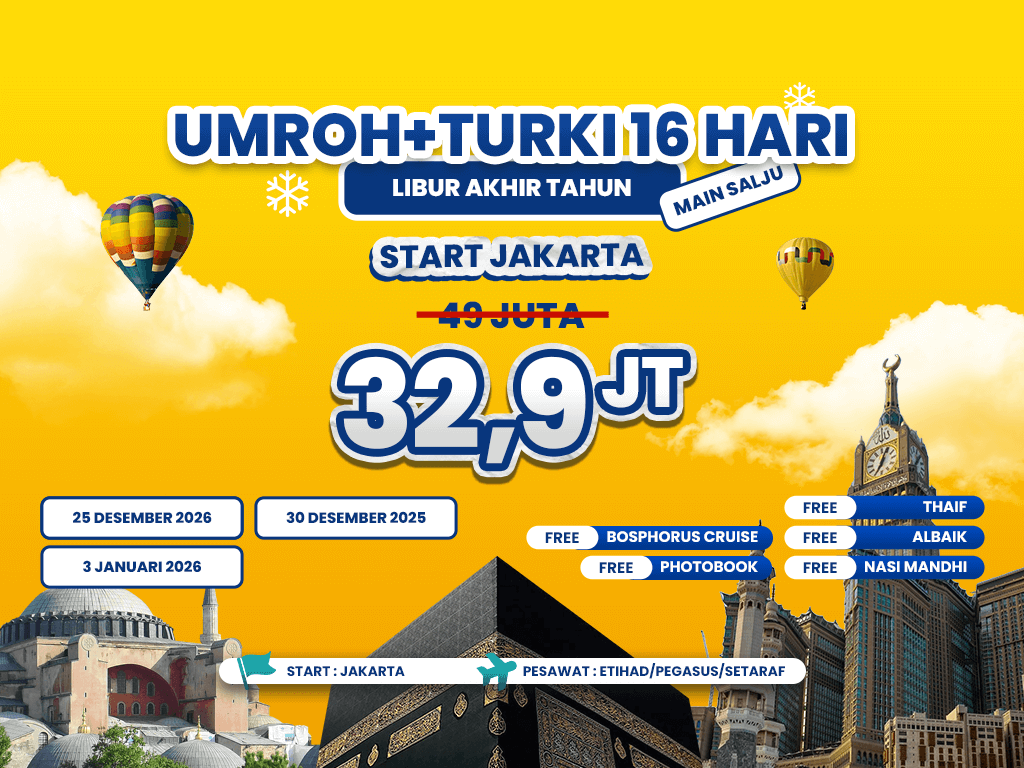 Umroh Plus Turki 16 Hari Libur Akhir Tahun Start Jakarta